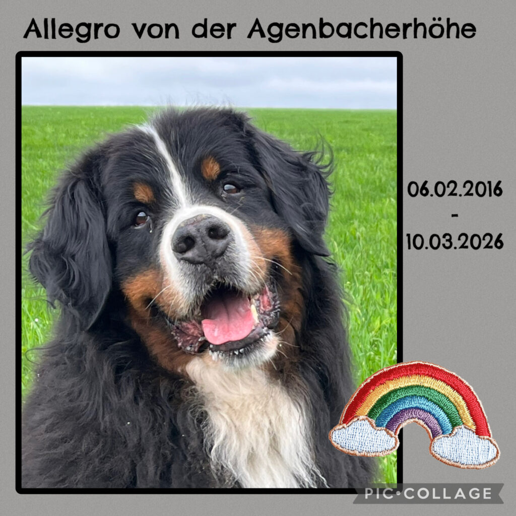 Letzte Woche erreichte uns leider die traurige Nachricht, dass unser Erstgeborenes Bernerbaby Allegro über die Regenbogenbrücke gehen musste. Auch wenn wir wussten, dass aufgrund seiner Krankheit dieser Tag zeitnah kommt, traf er uns mit voller Wucht. Allegro war das erste Bernerbaby, was wir in unseren Händen empfangen durften und war somit für uns etwas ganz Besonderes. Wir trauern mit Heinz um einen wundervollen Bernerbub und sagen von Herzen Danke, dass Allegro so ein traumhaftes Hundeleben haben durfte und wir ihn so oft wiedersehen durften. Seine unbändige Wiedersehensfreude werden wir nie vergessen. Allegro wird immer einen festen Platz in unserem Herzen haben ❤️🐾🐾